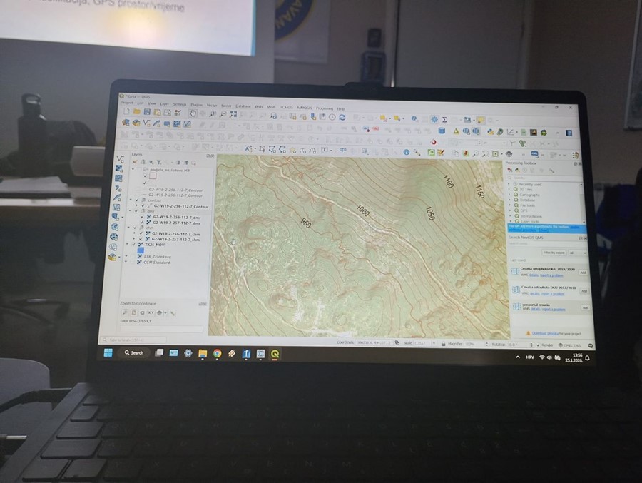 Fokus prvog bloka seminara bila je izrada vlastitih topografskih karata. Upotrebom besplatnih softvera, CloudCompare i QGIS te dostupnih LiDAR podataka Hrvatske, svi su sudionici imali priliku izraditi vrlo detaljne karte terena. Nakon obrade, topografske karte sudionika unesene su u mobilnu aplikaciju za navigaciju OruxMaps.